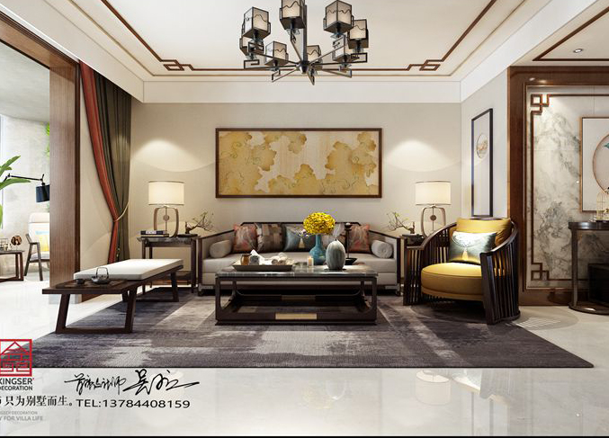 大者國山雅苑180平米新中式風格裝修效果圖