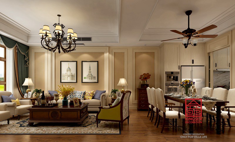 西山林語(yǔ)下疊裝修260平米美式輕奢風(fēng)格效果圖