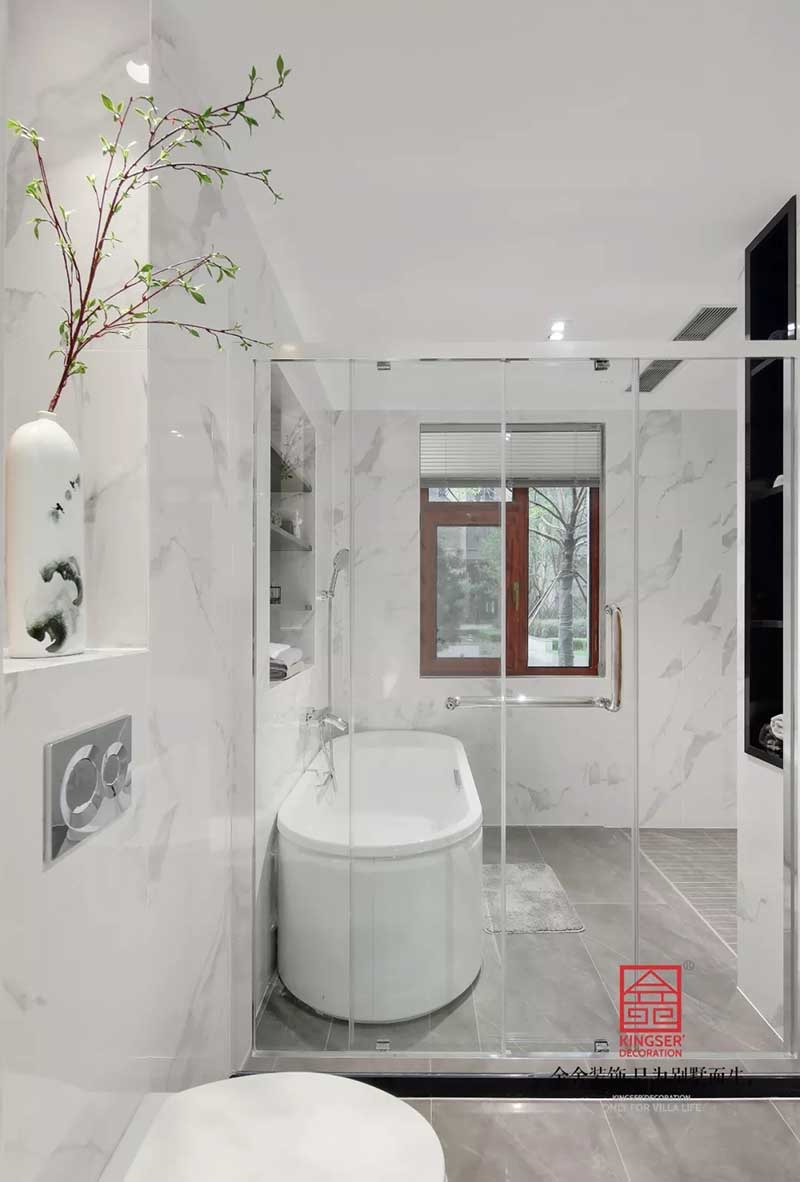 同時,我們也可以通過在洗手臺處安裝大面積的鏡子,以及增加鏡子前燈帶的設(shè)計,從而起到對衛(wèi)生間空間輔助照明,提亮空間的作用。這樣的設(shè)計可以讓空間的光線更加的均勻,方便我們?nèi)粘5乃⒀老词?,最大化的彌補暗衛(wèi)光線不足的缺點。