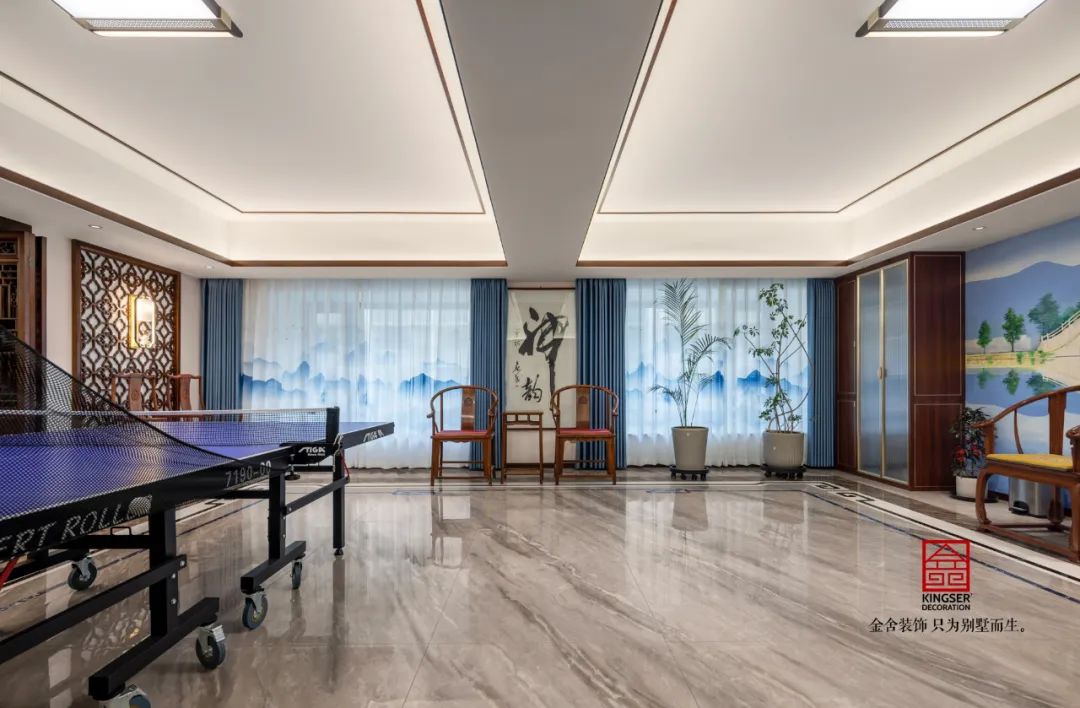一個(gè)家居會(huì)所最不能缺少的就是娛樂的空間,乒乓球臺和影音室,晨沐朝霞、夜觀星斗,總有人想要脫開繁復(fù)的人事交集,體味中式元素之廣博。