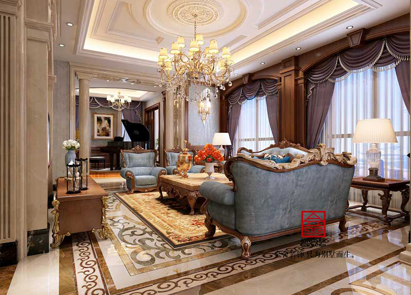 此案例為石家莊金舍裝飾-碧桂園別墅318平米歐式風(fēng)格裝修效果圖。房子是一棟雙拼別墅打通了,戶型結(jié)構(gòu)很舒適。一樓主要是公共空間,二樓居住為主,三樓主要是娛樂。
