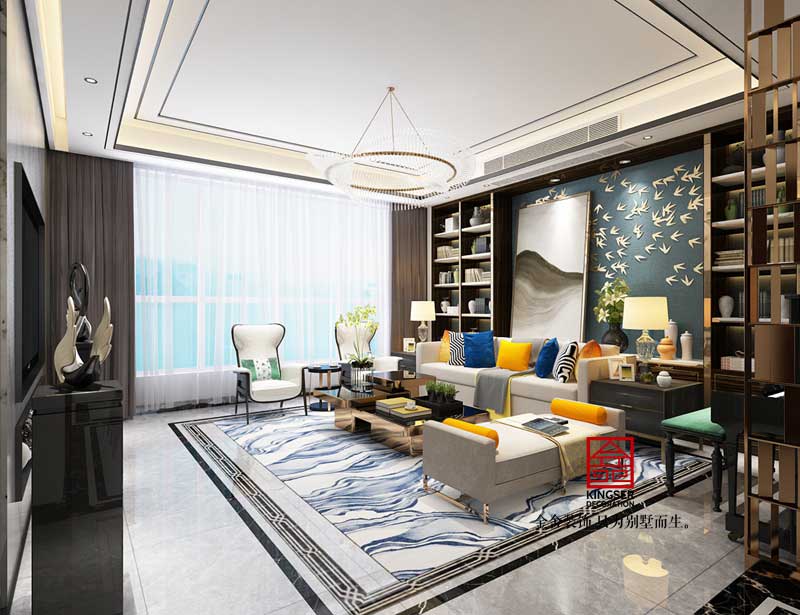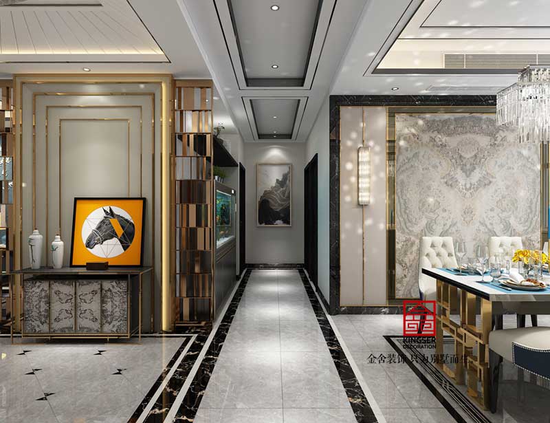 此案例為石家莊金舍裝飾-榮盛華府185平米港式風(fēng)格裝修效果圖。港式風(fēng)格家居也有其自身特點,多以金屬色和線條感營造金碧輝煌的豪華感,簡潔而不失時尚。