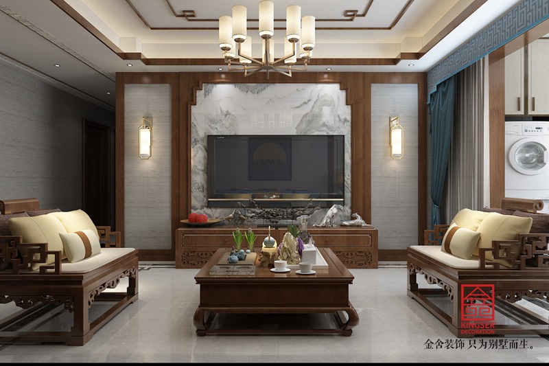 本案為石家莊金舍裝飾-東南智匯城132平米中式風(fēng)格裝修效果圖。中式風(fēng)格的設(shè)計(jì)不同于現(xiàn)代風(fēng)格的簡(jiǎn)約型設(shè)計(jì),通過對(duì)傳統(tǒng)文化的認(rèn)識(shí),將現(xiàn)代元素和傳統(tǒng)元素結(jié)合在一起,以現(xiàn)代人的審美需求來打造富有傳統(tǒng)韻味的事物,體現(xiàn)出了中國(guó)傳統(tǒng)的古典藝術(shù)韻味。本案造型上選擇簡(jiǎn)潔、硬朗的線條設(shè)計(jì),在圖案上要求精致,而且多樣式的線條可以使空間顯得有層次感,明清的中式家具打造一種沉穩(wěn)厚重的裝修效果。處處體現(xiàn)著濃郁的東方色彩,氣勢(shì)恢宏、壯麗華貴,電視墻采用中式風(fēng)格最講究的對(duì)稱造型,與中間的石材山水圖案渾然一體,簡(jiǎn)潔大方,不失韻味