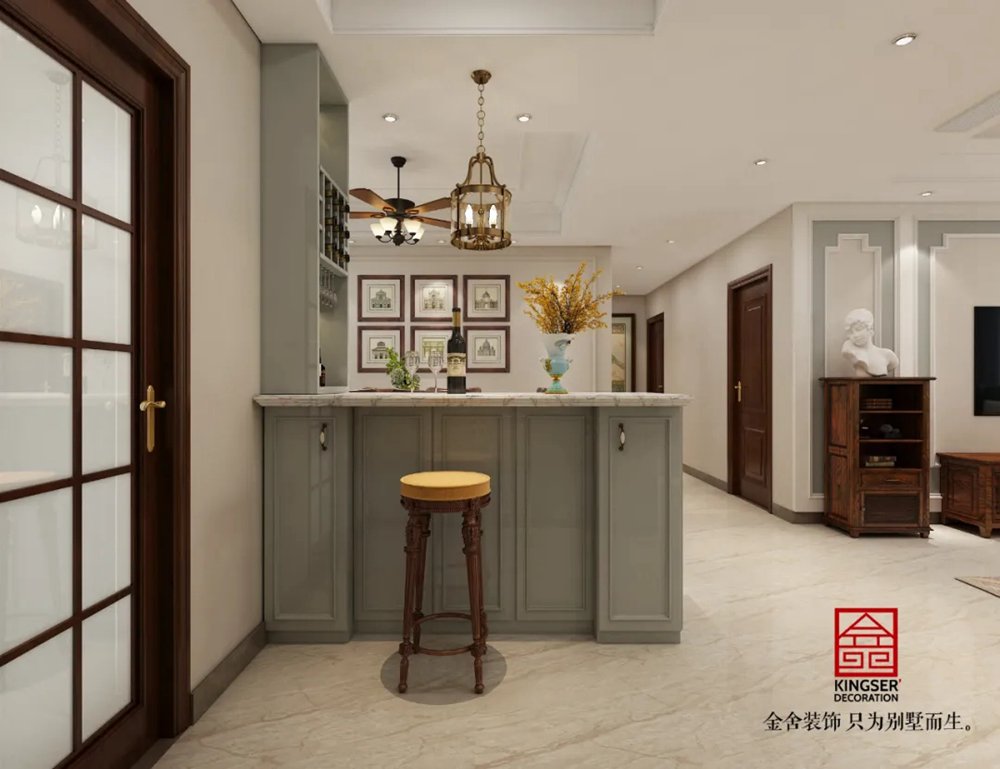 美式風(fēng)格裝修,像是一首浪漫的詩(shī),激發(fā)內(nèi)心探求自由生活的渴望,帶來(lái)的不僅是生活方式的解讀,也是現(xiàn)實(shí)生活的生動(dòng)呈現(xiàn)。因?yàn)闅q月的沉淀,因?yàn)樵O(shè)計(jì)的呈現(xiàn),又因?yàn)槟歉钌岵粩嗟那楣?jié)。