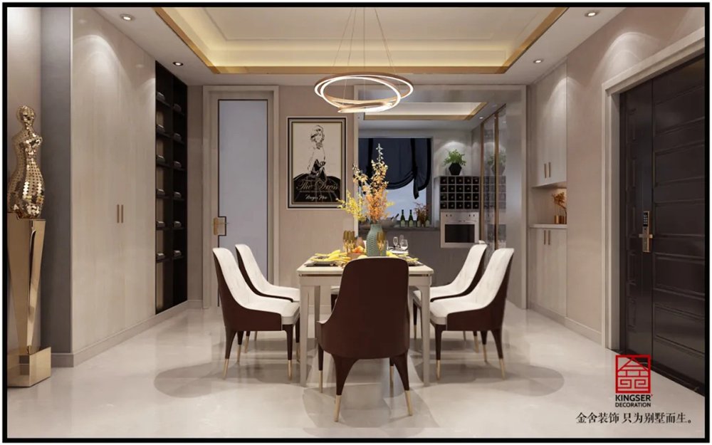 此案例為石家莊金舍裝飾-瀚林甲第166平米輕奢風格裝修案例。一縷和煦的陽光,照亮你的家。木色與大理石,不僅能襯托陽光的溫暖,在視覺上還有較強的延展性,相同色系的墻壁將整個家居空間合為一個統(tǒng)一整體,帶給居住者不一樣的視覺享受。