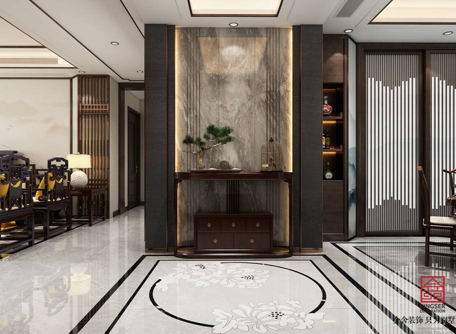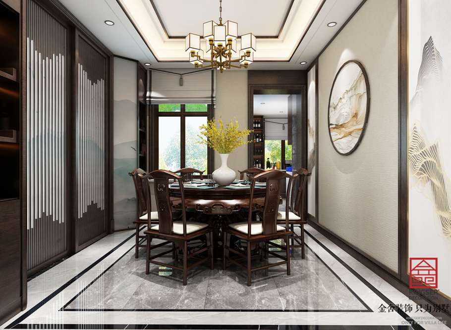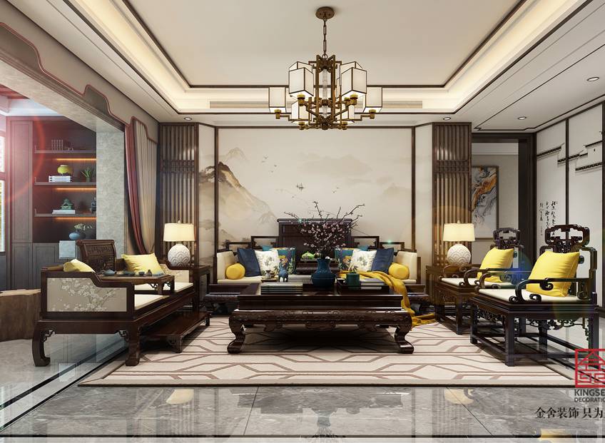 石家莊金舍裝飾-榮盛華府185平米新中式風格裝修效果圖。定位為新中式禪意風格,本方案的設計哲學是給人一種靜謐、平和、舒緩的感覺,新中式設計追求的是一種清新高雅的格調(diào),注重文化積淀,講究雅致意境。以簡樸、舒適、隨意的特點給人很強的吸引力,搭配著新中式的紅木家具,為生活營造出一個寧靜、安逸、平和的風格。既繼承了傳統(tǒng)中式風格的固有理念和元素,又有現(xiàn)代設計理念的創(chuàng)新以及現(xiàn)代工藝的運用。當走進禪意新中式設計的房間,仿若走進了另外一種生活狀態(tài)。新中式的圈椅沙發(fā),簡單大方的茶幾。讓人好不愜意。這種表現(xiàn)能夠完整地體現(xiàn)出居住人追求品質(zhì)、典雅生活,視生活為藝術的人生態(tài)度。