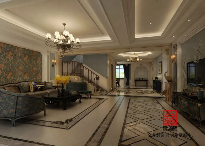 美式風(fēng)格強(qiáng)調(diào)以華麗的裝飾、濃烈的色彩、精美的造型達(dá)到華貴的裝飾效果,本案用厚重的顏色表達(dá)出一種略微嚴(yán)肅的美式氣息,透露出一種美國西部的不羈和自由,以及為了開辟新世界的激情熱血,在那個年代的激情不止是一個對于新世界的探索,更是一次與自然與生存之間的斗爭,美式風(fēng)格就是在自由與自然殘酷中糾葛中的那份不羈,變革與守舊就像是兩個符號一樣在不斷地纏繞和更迭。如果說大航海時代是人類對于海洋的探索和征服,那么美式風(fēng)格就是一次對于家裝變革的開始。
