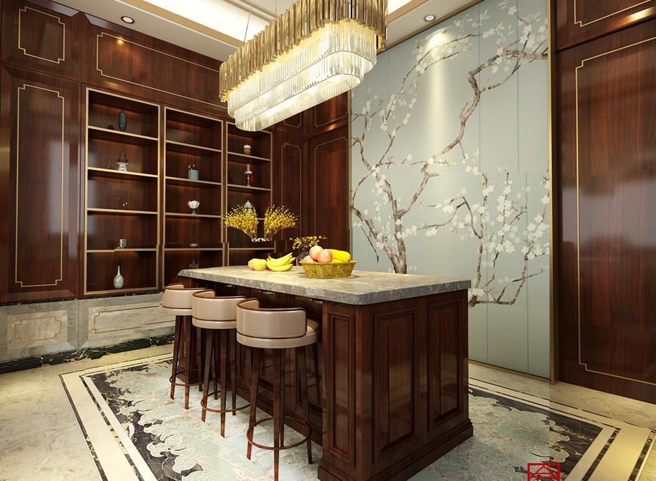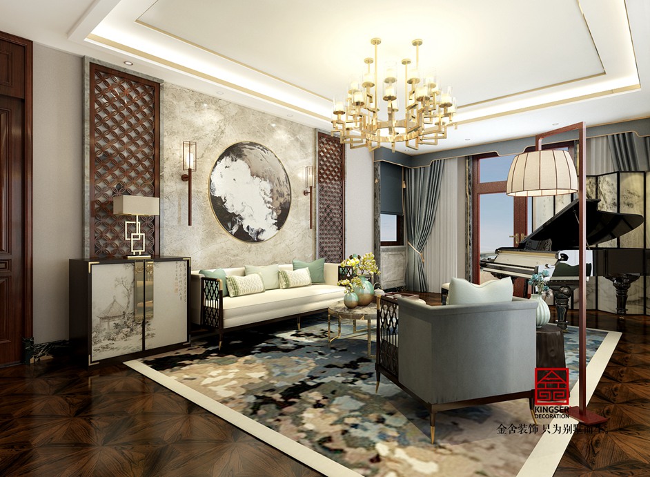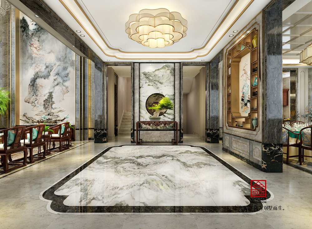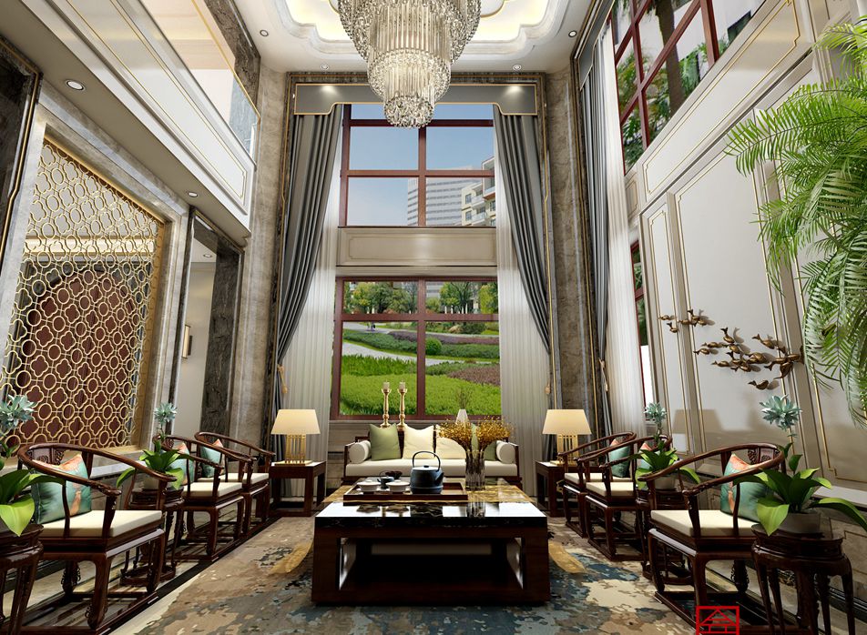 此案例為石家莊金舍裝飾-北苑別墅800平米新中式風格裝修設計圖。新中式風格中的家具大多是古典家具或者是現(xiàn)代家具與古典家具想結(jié)合。家具的顏色主要是以深色為主,有深厚沉穩(wěn)的底蘊。裝飾造型主要采用硬朗簡潔的直線條,空間具有層次感。既使得中式家具古典、質(zhì)樸的內(nèi)涵顯現(xiàn),又符合現(xiàn)代人追求的時尚感、實用性。 金舍裝飾在室內(nèi)設計中,一貫追求照搬古代設計往往效果不盡如人意,更要注重加入現(xiàn)代元素?,F(xiàn)代技術中有很多新型材料,就可以善加利用進去。另外在設計中也可以把主人的個人喜好、品味等也加入進去。既滿足現(xiàn)代人居住的要求,迎合中式家具的設計風格。