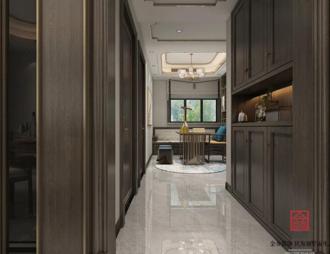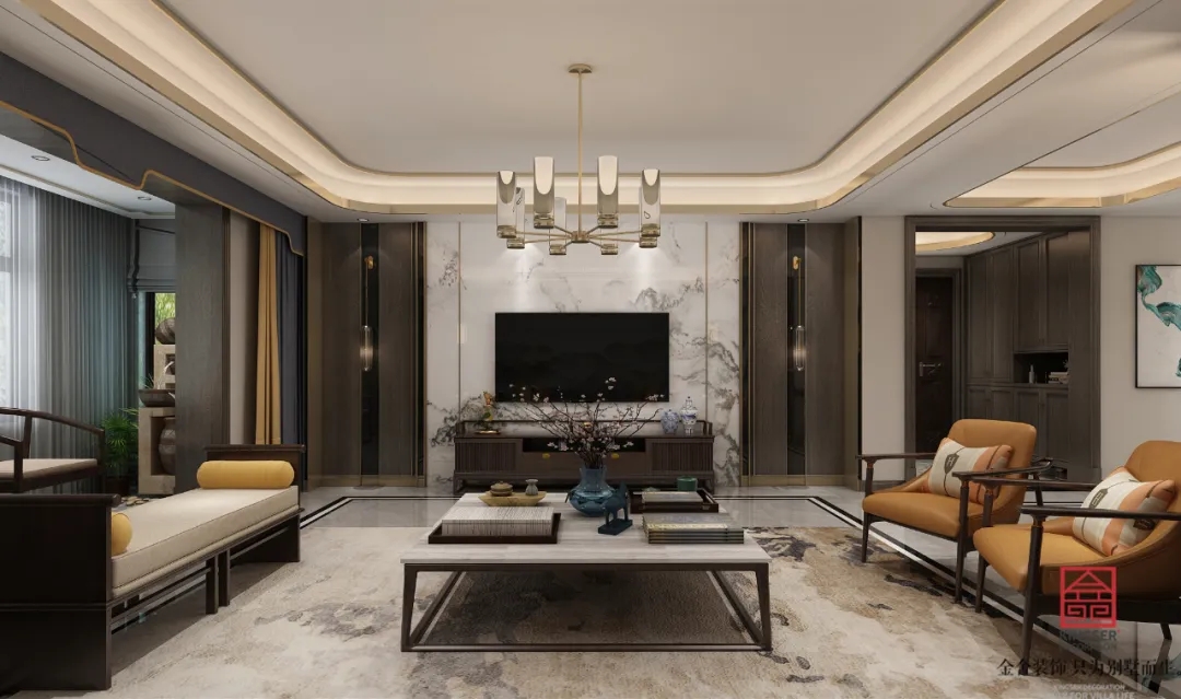 此案例為石家莊金舍裝飾-榮盛華府215平米新中式風(fēng)格裝修案例。新中式風(fēng)格傳承了傳統(tǒng)中式風(fēng)格的文化底蘊(yùn),又將現(xiàn)代審美融入其中,將含蓄內(nèi)斂的美學(xué)韻味徐徐呈現(xiàn)在了眾人面前,令人沉醉、留戀。似有靜謐、似含古韻,思想不禁浮想聯(lián)翩,無法掩飾一個(gè)人的精神世界,是心靈和性情的外化之地。中式元素與現(xiàn)代材質(zhì)搭配,既有文化的傳承又不會全盤固守傳統(tǒng),是現(xiàn)代的思想與千年來的文化彼此融合與碰撞。