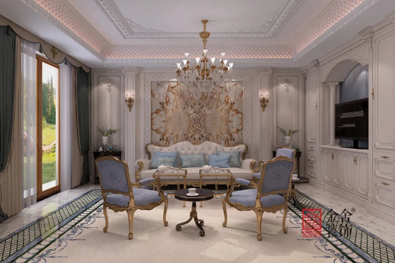 此案例為石家莊金舍裝飾-原河名墅600平米法式風(fēng)格裝修效果圖。法式風(fēng)格往往不求簡(jiǎn)單的協(xié)調(diào),而是崇尚沖突之美。在設(shè)計(jì)上講求心靈的自然回歸感,給人一種撲面而來(lái)的濃郁氣息。同時(shí)法式風(fēng)格裝修彰顯出法國(guó)人對(duì)美的追求,特別是細(xì)節(jié)的處理,大量運(yùn)用廊柱、雕花、線條等來(lái)提升裝飾效果,并采用精細(xì)的施工工藝,表達(dá)出法國(guó)人獨(dú)特的浪漫情懷。
