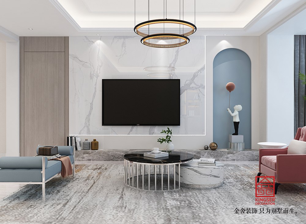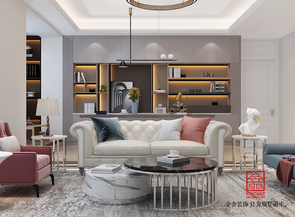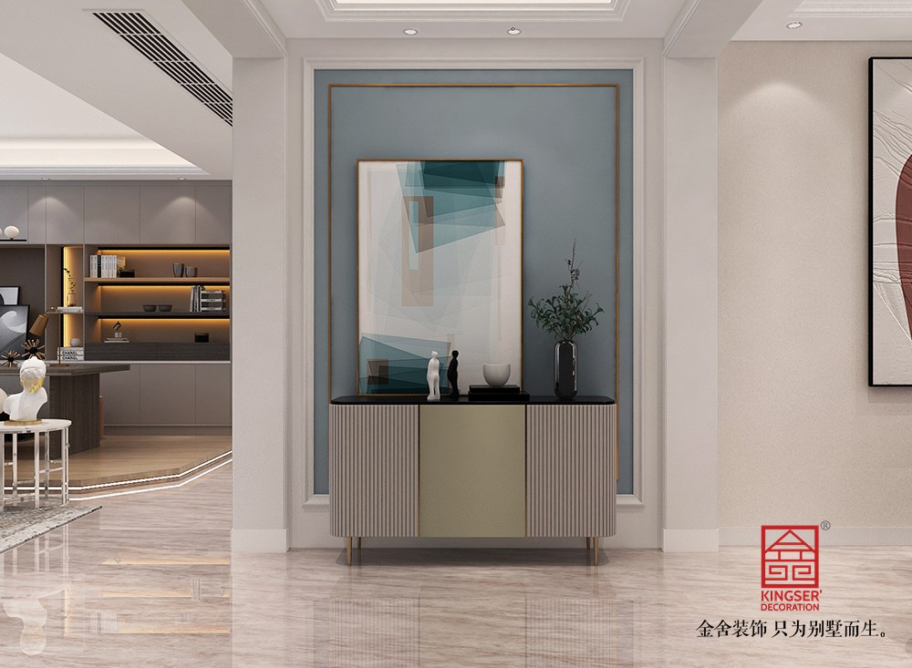 此案例為石家莊金舍裝飾-瀚林甲第167平米美式風格裝修效果圖。一位獨立自主的80后女性,有自己的主張、自己的生活方式,同樣也希望有更加自我的居住環(huán)境,那是一個簡潔清新,且富有質(zhì)感的空間,美式輕奢恰好符合了這一點,美式風格的獨特浪漫情懷、優(yōu)雅浪漫,房間里處處凝結著自由不羈的生活情調(diào)。冷色系的藍調(diào)和暖色系的黃調(diào)相互碰撞,給了這個家不一樣的精彩,每個細節(jié)都充滿了對美好生活甜蜜幸福的期望
