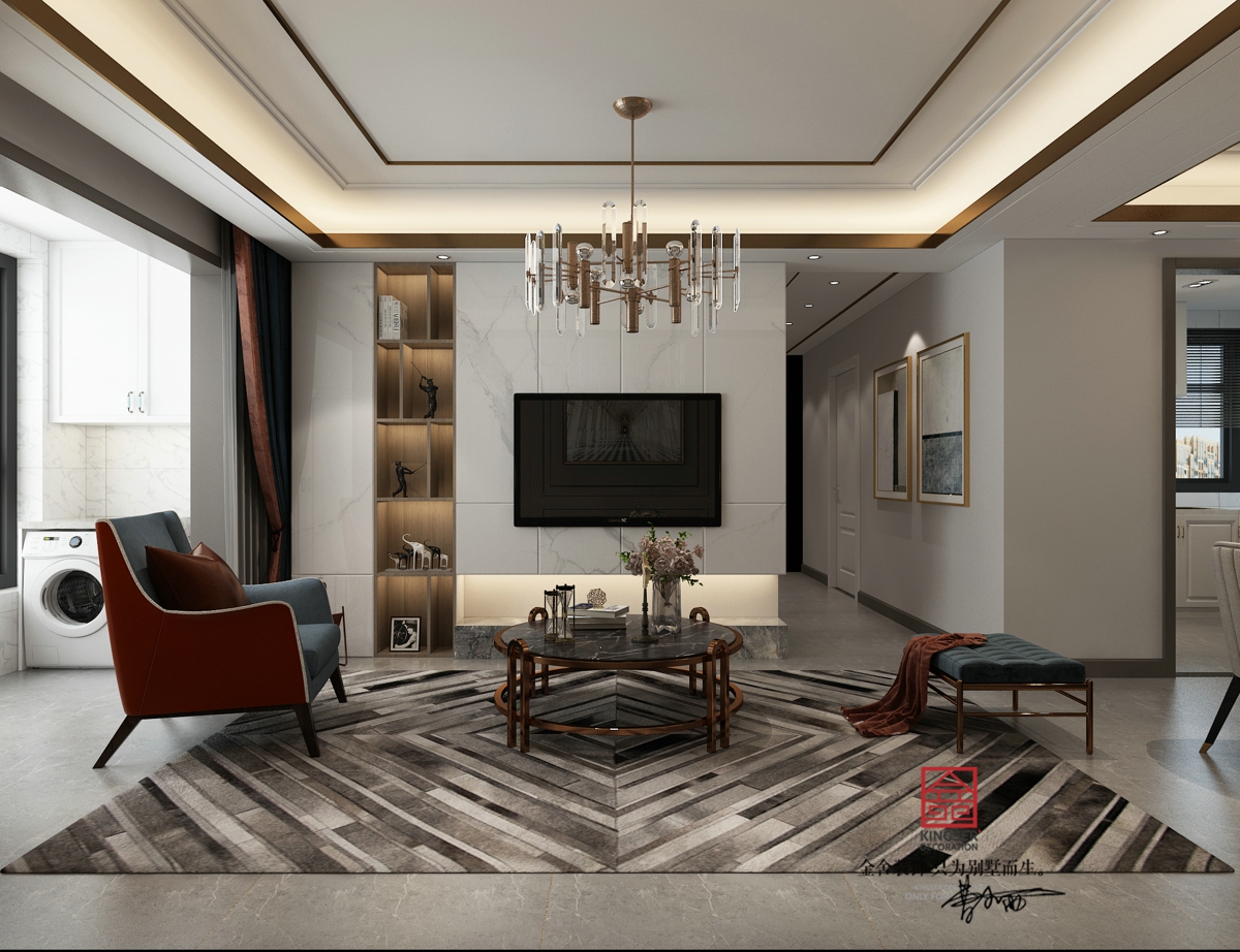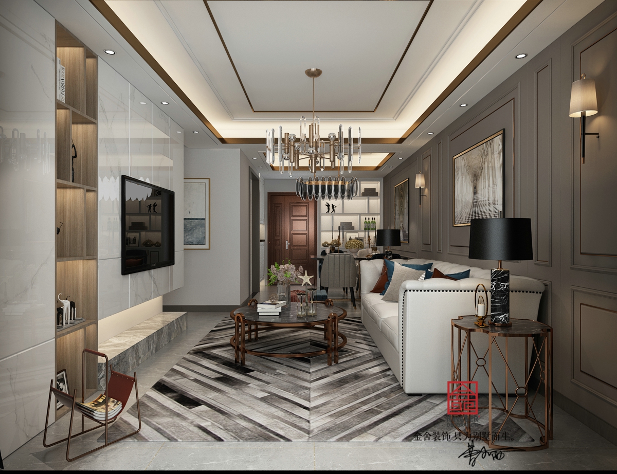 【設計主創(chuàng)】:趙昱 設計說明:此案例為石家莊金舍裝飾-融創(chuàng)中心125平米輕奢風格裝修效果圖?!τ谀贻p一族來說,豪奢不是最重要的,溫暖、輕松、愉悅、充滿生活氣息的品質(zhì)生活才是他們真正的需求所在。比起在視覺層面的迎合,適宜的大小、滿足日常居住的功能性、舒適的空間氛圍更能打動他們。