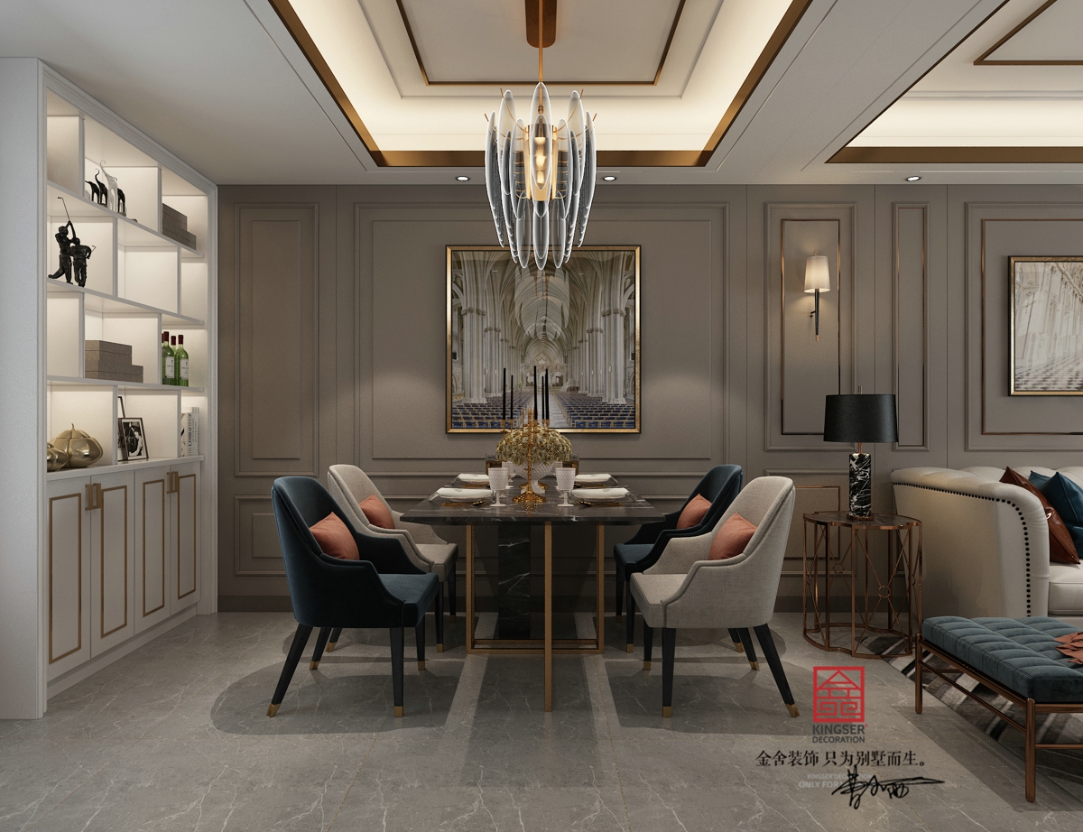 輕奢風格的空間以金屬、皮革的中性色調(diào)為主