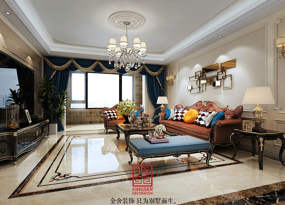 設(shè)計說明: 此案例為石家莊金舍裝飾-東南智匯城190平米歐式風(fēng)格裝修效果圖。雖是歐式風(fēng)格,但是也顯低調(diào)和奢華,空間的設(shè)計,線條加金屬的精致,兩者相容,地面的大型拼花的石材 ,皮質(zhì)紋路的串聯(lián),金屬與石膏銜接的墻體,水晶的閃爍,為整個家的色彩增添不少精致。